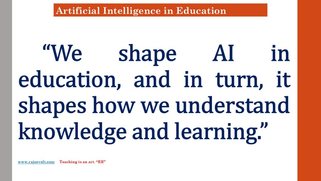 “We shape AI in education, and in turn, it shapes how we understand knowledge and learning.” We should also examine real-world examples that illustrate both the potential and challenges of AI in education. Adaptive learning platforms used in various countries have demonstrated improved student engagement and performance by offering personalized learning paths. AI chatbots assist students in higher education with queries related to admissions, coursework, and campus services, improving responsiveness and efficiency. However, there have also been instances where automated grading systems misinterpret student responses, highlighting the limitations of current AI technologies. These examples underscore the importance of continuous evaluation and refinement of AI systems to ensure reliability and effectiveness.